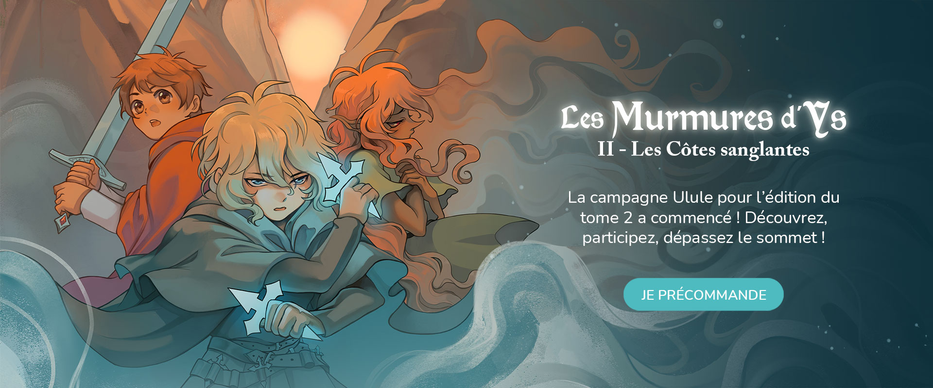 Les Murmures d’Ys, tome 2 : Les Côtes sanglantes, est d’ores et déjà disponible en précommande, accompagné de goodies exclusifs à Ulule. Son édition et les finitions de l’objet-livre dépendent de la cagnotte débloquée.